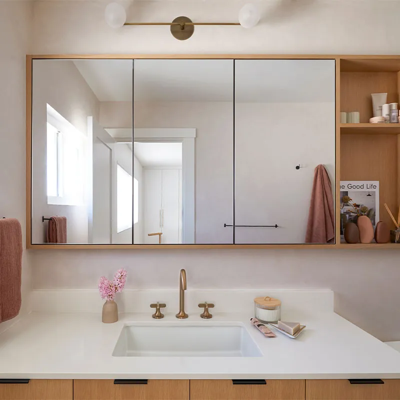 Зеркальное стекло для ванной — это не просто зеркало; оно должно выдерживать суровые условия высокой температуры и влажности. Доступные варианты кастомизации: светодиодные зеркала для ванной (со светодиодной подсветкой) и антизапотевающие зеркала для ванной (с электрическим подогревом и защитой от запотевания).